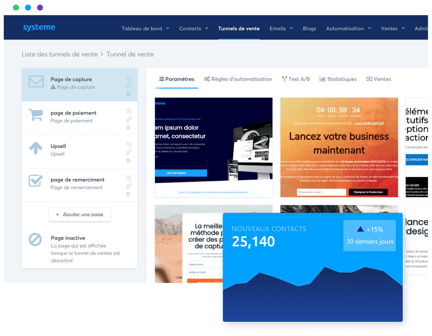 Systeme.ioPour gérer mes formations, tunnels de vente, pages de capture et campagnes email.